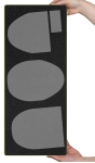 - Lay “sandwiched” pieces on the die over the blades for the Outside, Inside Top, and Inside Bottom with outer fabric facing up. Place one 2 1/4" x 4" fabric rectangle on the Hang Loop section. Place mat over and cut.